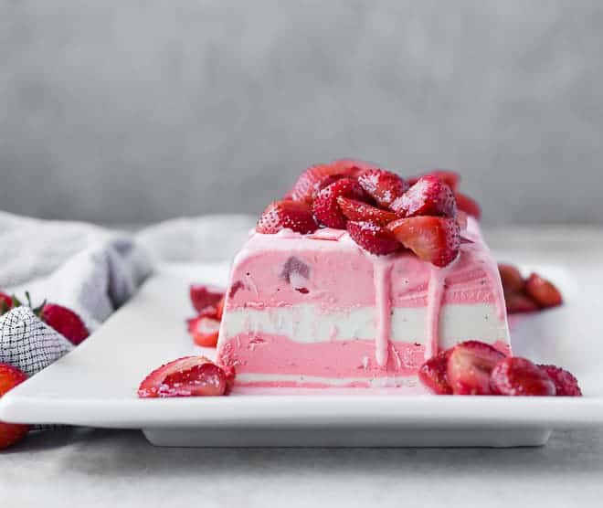 Why you’ll love it: This ice cream terrine is impressively beautiful and very easy to make. Top it with fresh or roasted strawberries, or homemade hot fudge!