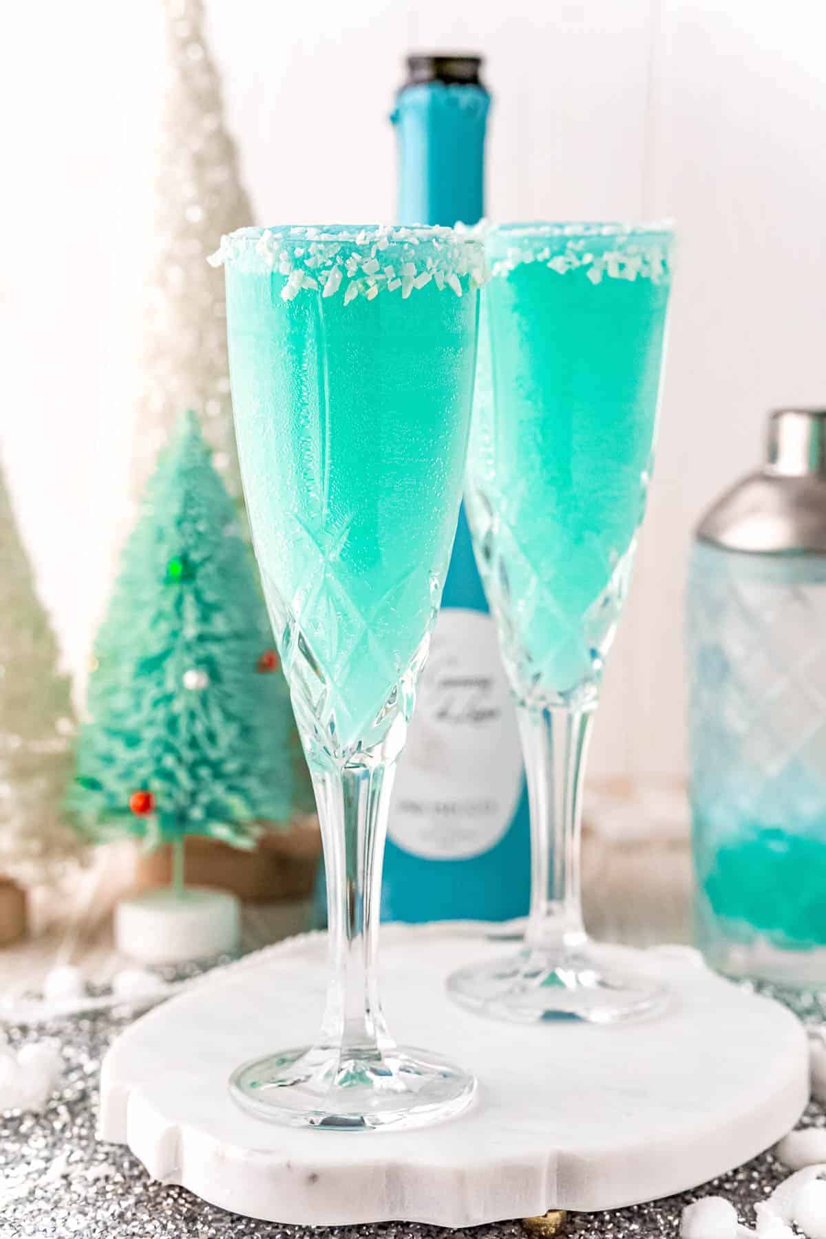 Why you’ll love it: A gorgeous hue of blue, a Jack Frost mimosa, with its “frosty” rim of coconut, is a spectacular addition to your brunch or holiday party. It’s beautiful and unique!