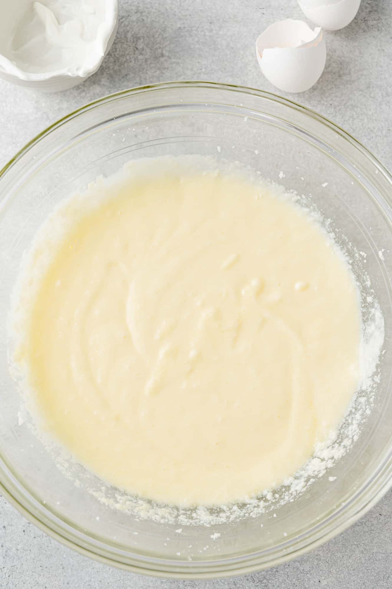 Cream the butter and sugar in a large mixing bowl with an electric mixer until the mixture is soft and fluffy. Add the eggs, beating well until combined, followed by the Greek yogurt and lemon juice.