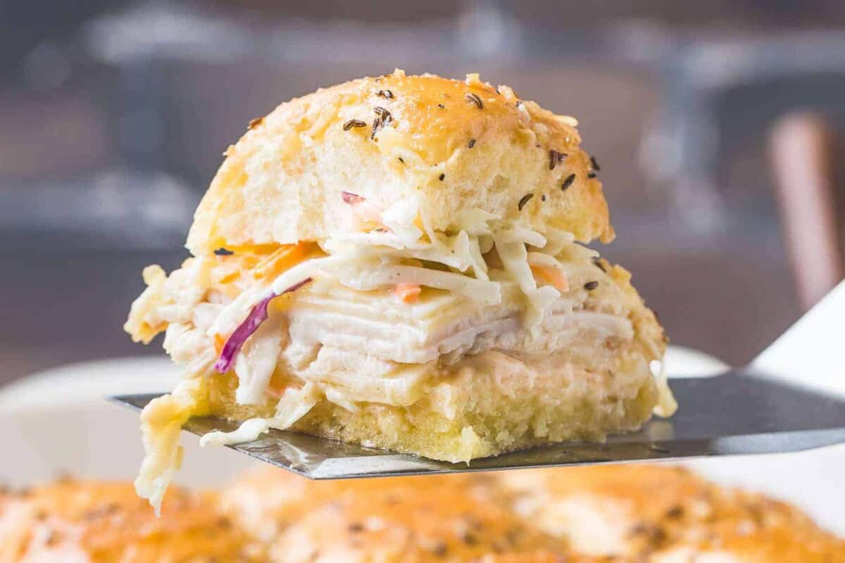 - Hawaiian Sweet Rolls: This is a popular type of dinner roll that has a somewhat sweet flavor (a popular brand is King’s Hawaiian sweet rolls). They usually come in a package of 12 rolls, although I’ve seen them in a 24-pack, too. All 12 rolls are attached to each other, making it really easy to assemble the sliders because you don’t have to fill a bunch of individual rolls; you can slice through the whole sheet of rolls and add the fillings in one big layer.